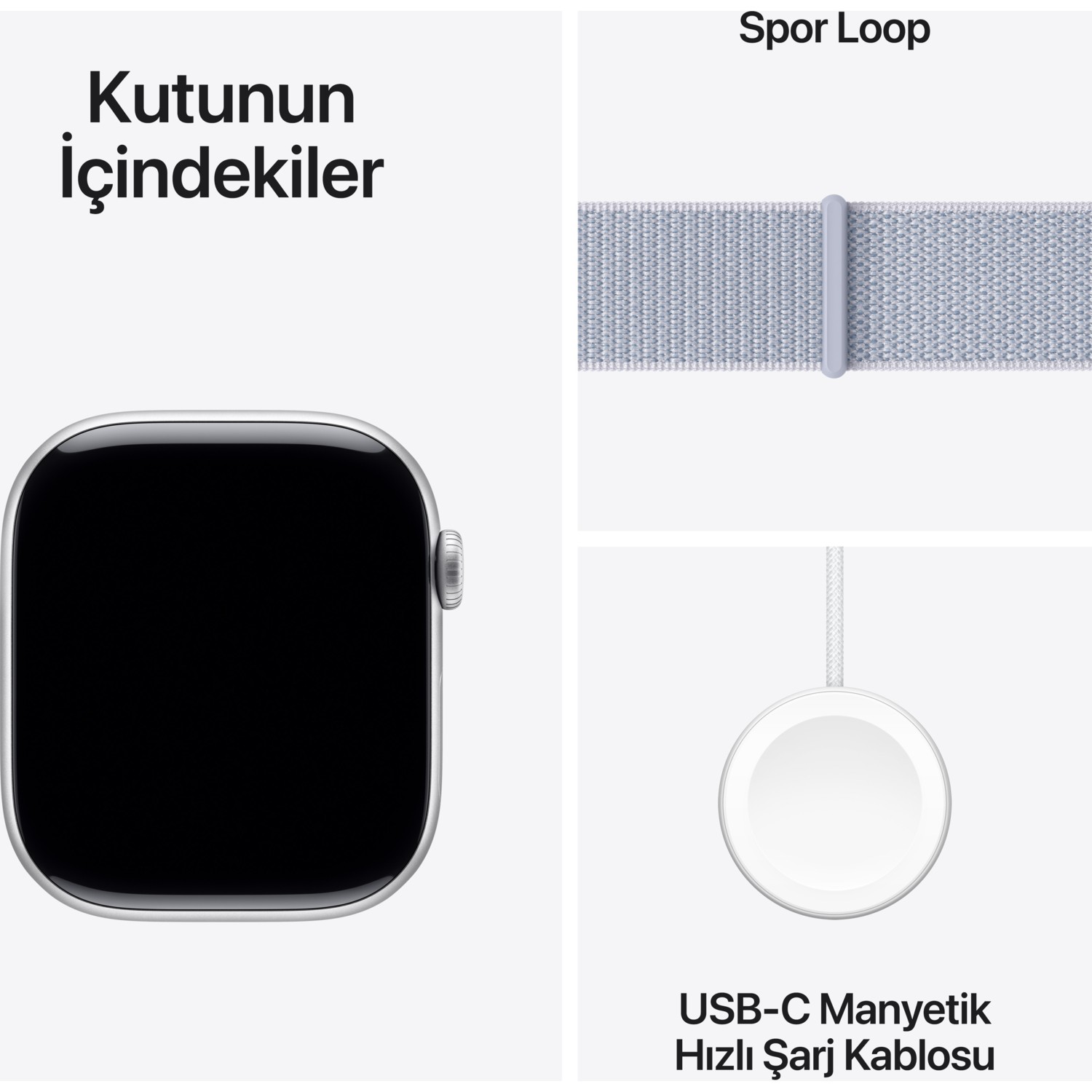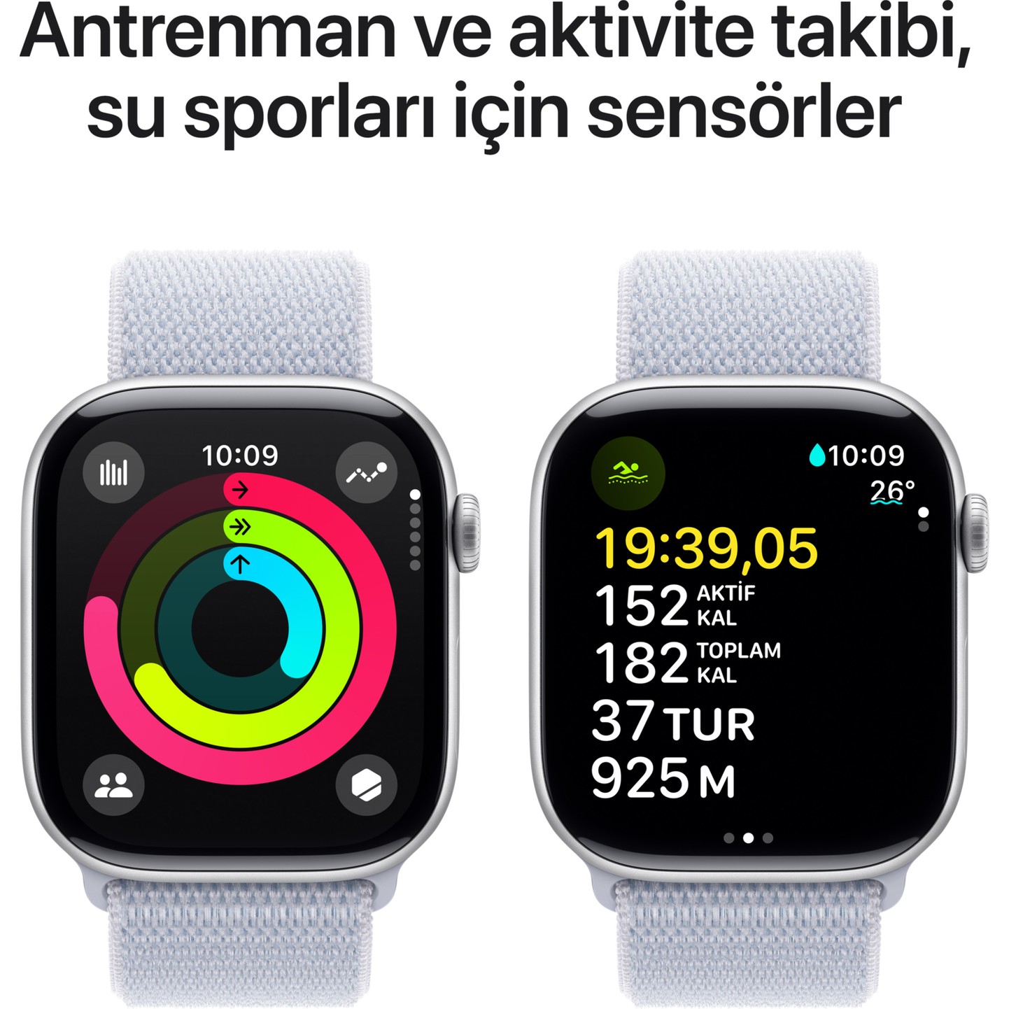 Apple Watch Series 10 GPS, 42 mm Gümüş Rengi Alüminyum Kasa ve Bulut Mavisi Spor Loop