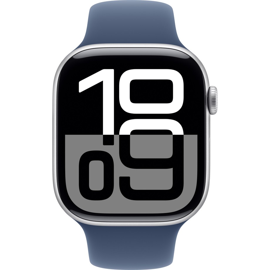Apple Watch Series 10 GPS, 46 mm Gümüş Rengi Alüminyum Kasa ve Kot Rengi Spor Kordon – M/L