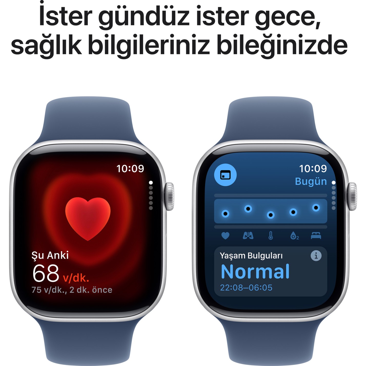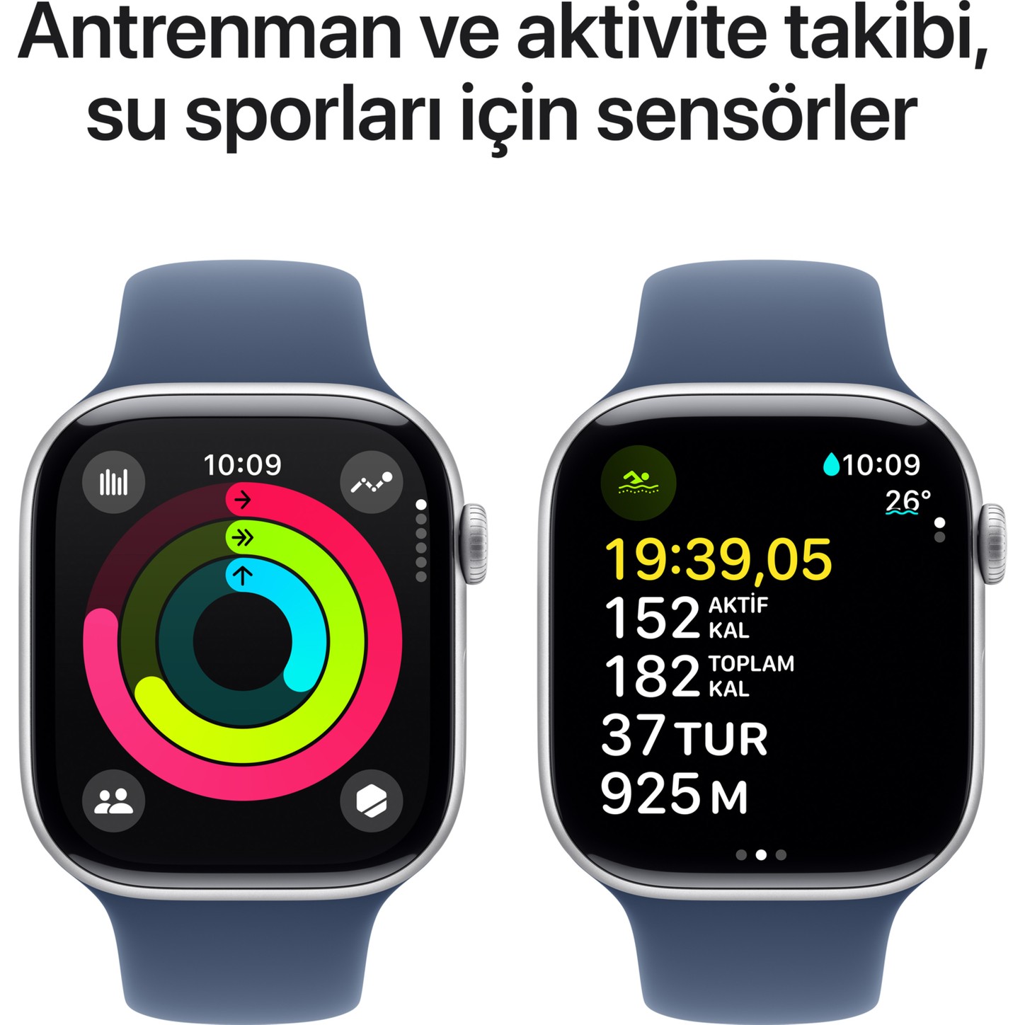 Apple Watch Series 10 GPS, 46 mm Gümüş Rengi Alüminyum Kasa ve Kot Rengi Spor Kordon – M/L için 5 değerlendirme