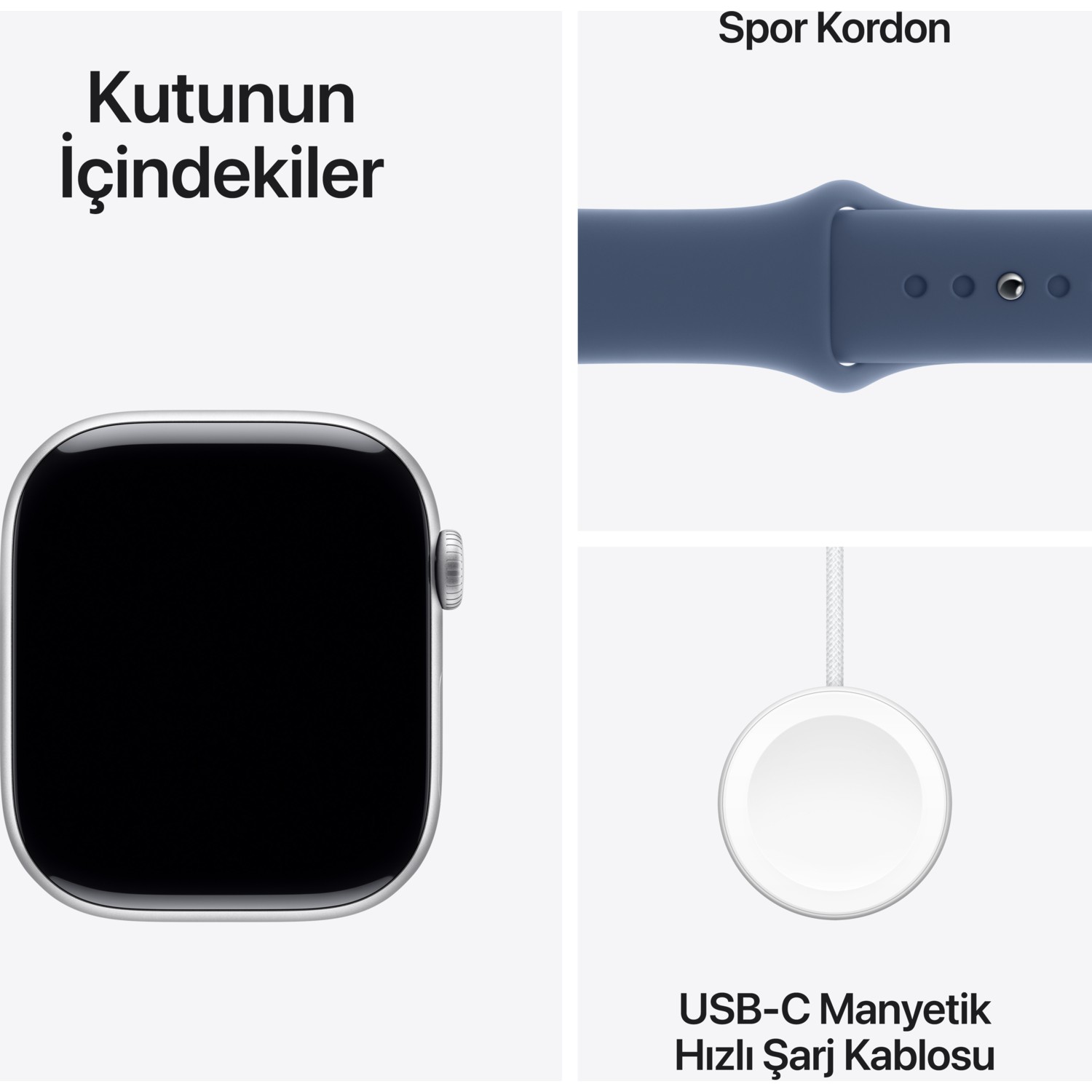 Apple Watch Series 10 GPS, 46 mm Gümüş Rengi Alüminyum Kasa ve Kot Rengi Spor Kordon – S/M