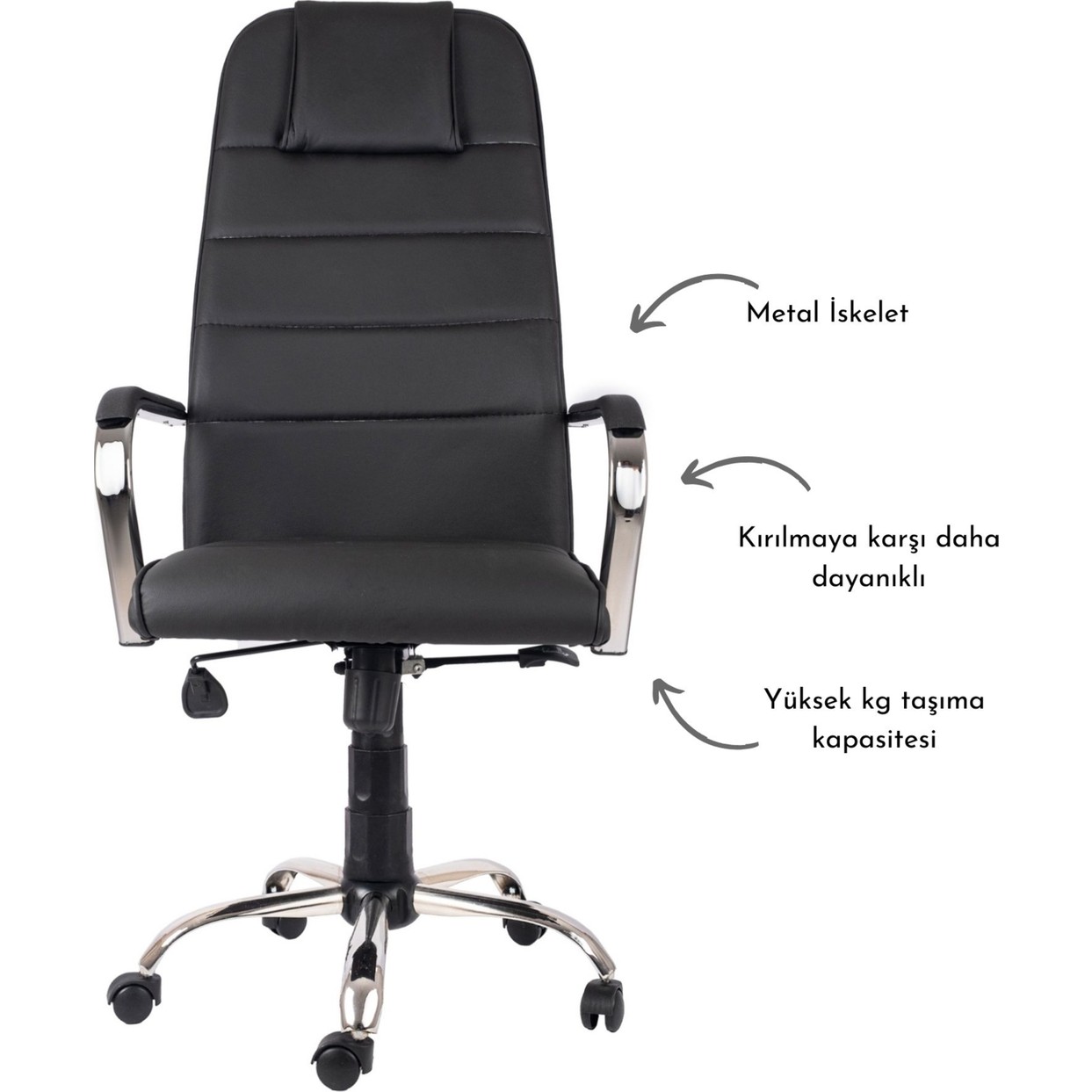 Sırtı Tam Destekleyen Uzun Arkalık ve Baş Desteği; uzun çalışma saatleri boyunca ihtiyacınız olan konforu sağlar. Boyunuza ve masanıza göre sandalyenizin yüksekliğini ayarlayarak anatominize uygun oturma pozisyonunu seçebilirsiniz.