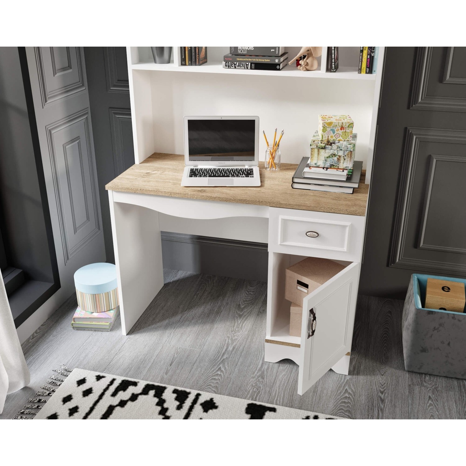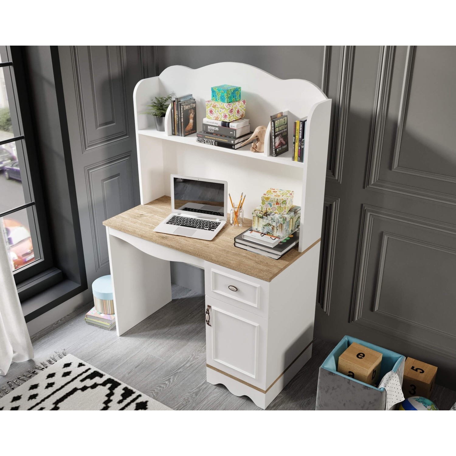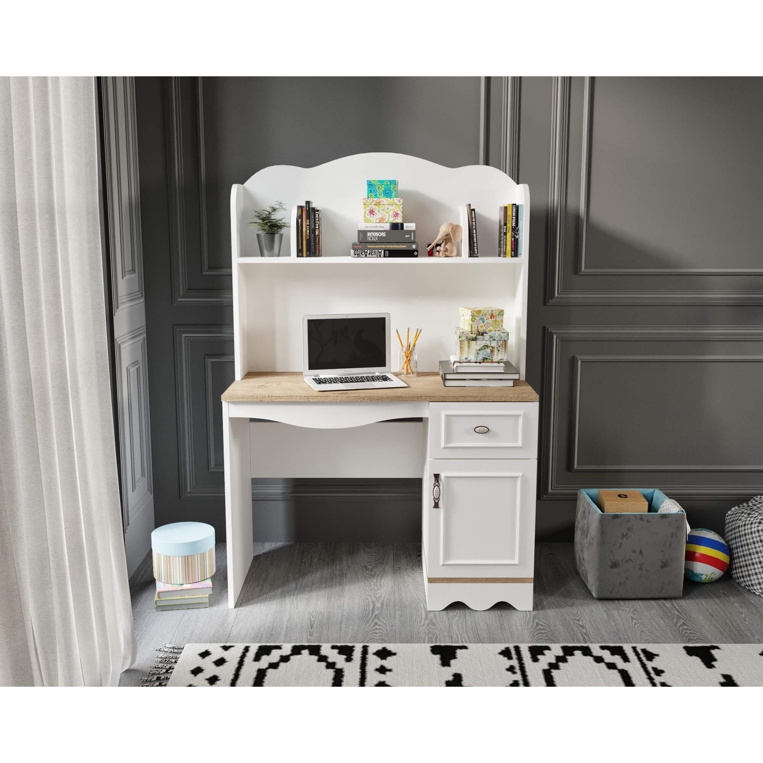 Bimossa Hürrem Kitaplık ve Raflı Çalışma Masası Ceviz Beyaz