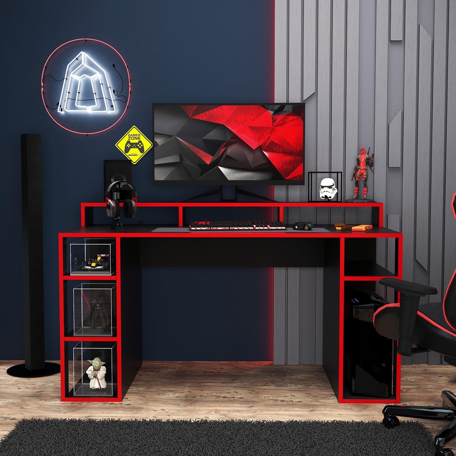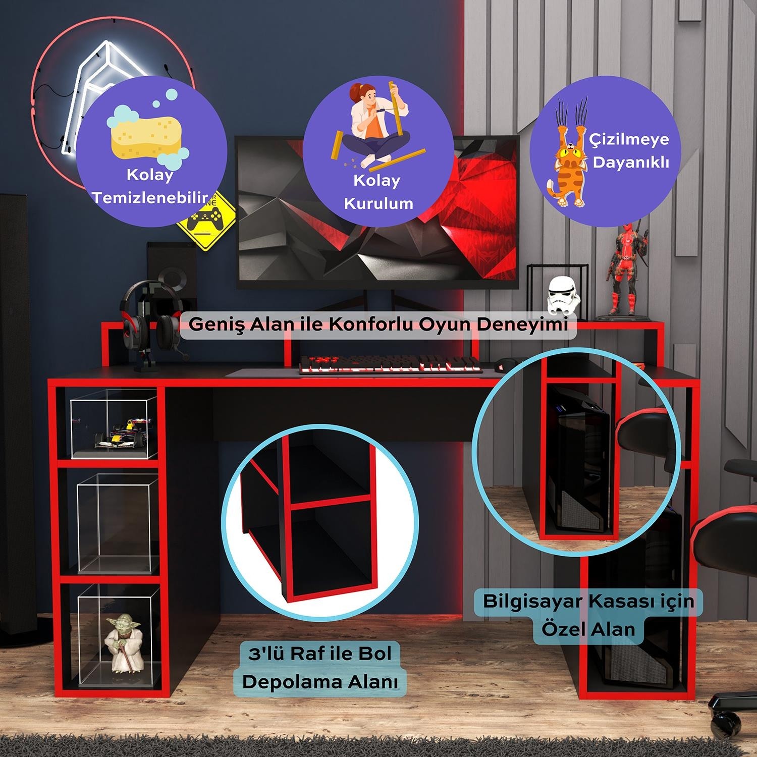 Bimossa Dina Oyuncu Masası Siyah Kırmızı 140 cm için 5 değerlendirme