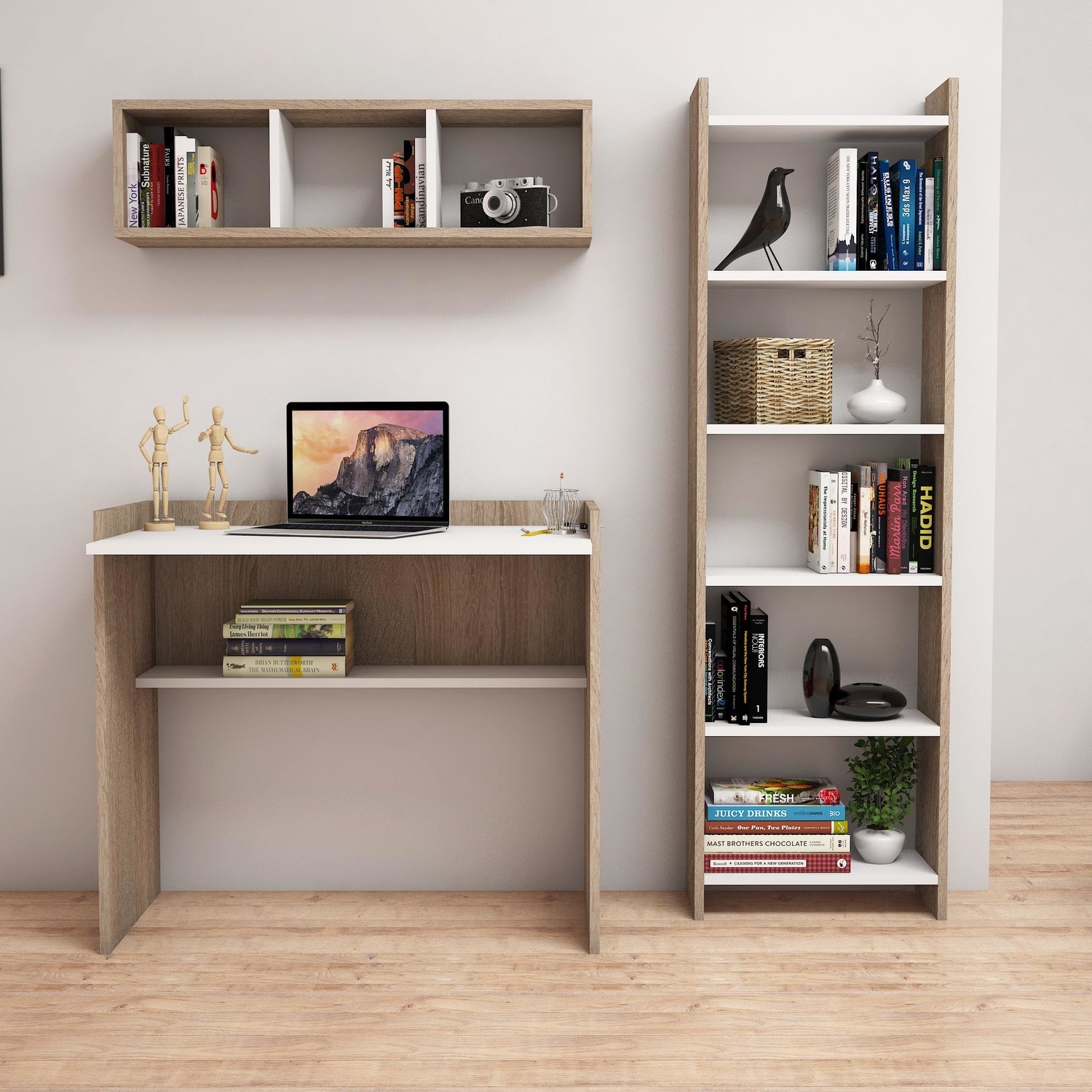 Bimossa Hürrem Kitaplık ve Raflı Çalışma Masası Ceviz Beyaz