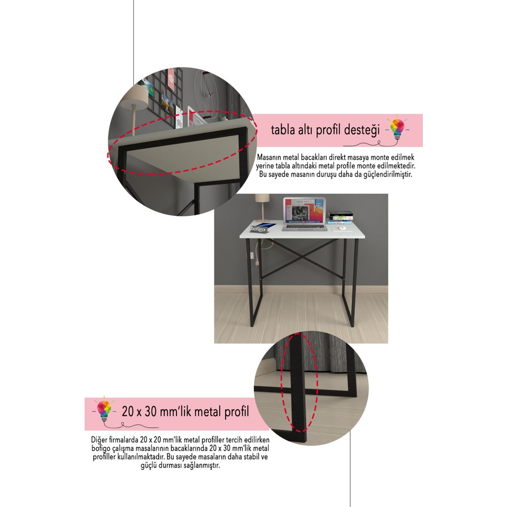 Bofigo 60X90 cm Çalışma Masası Bilgisayar Masası Ofis Ders Yemek Masası Beyaz
