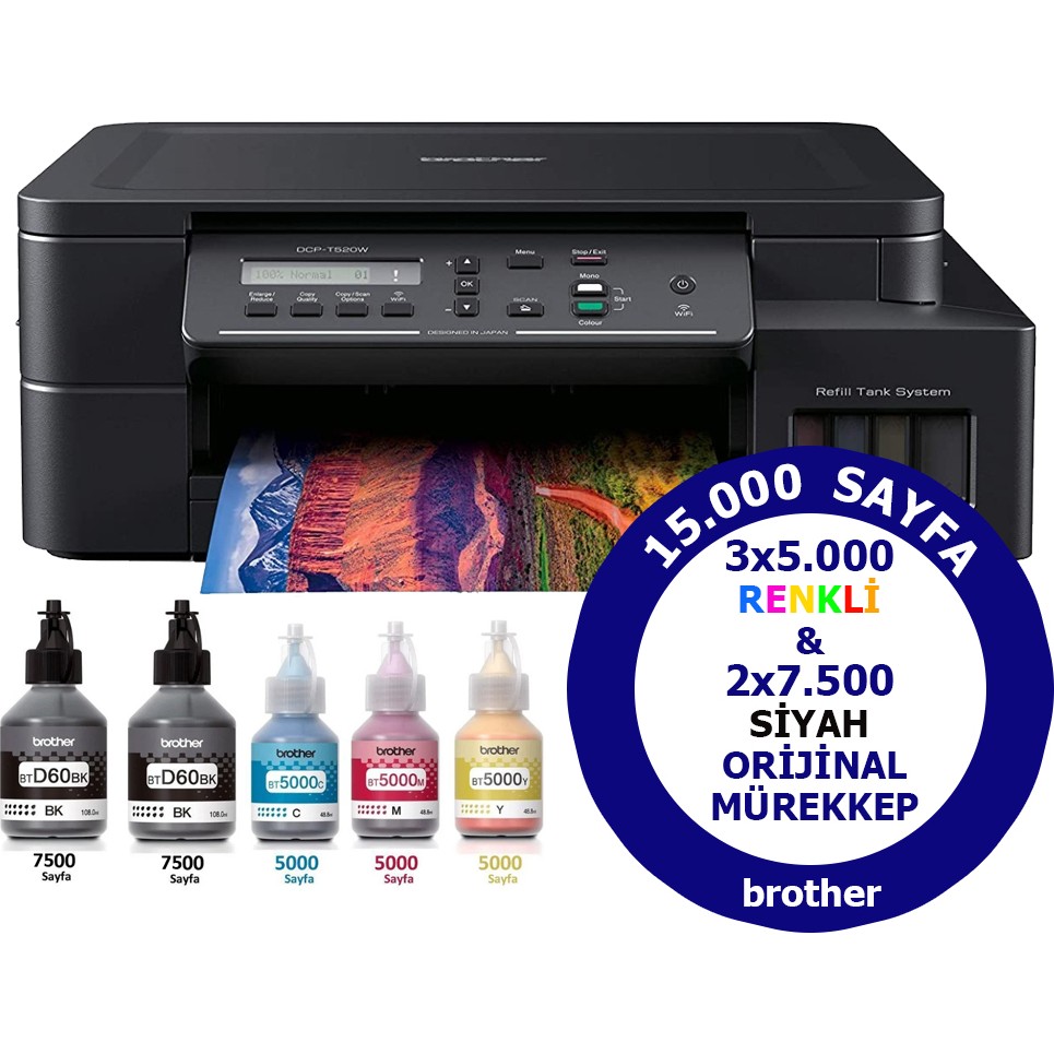 Brother DCP-T520W Renkli Mürekkepli Tanklı Yazıcı – Tarayıcı – Fotokopi – Wi-Fi – Çok Fonksiyonlu Yazıcı