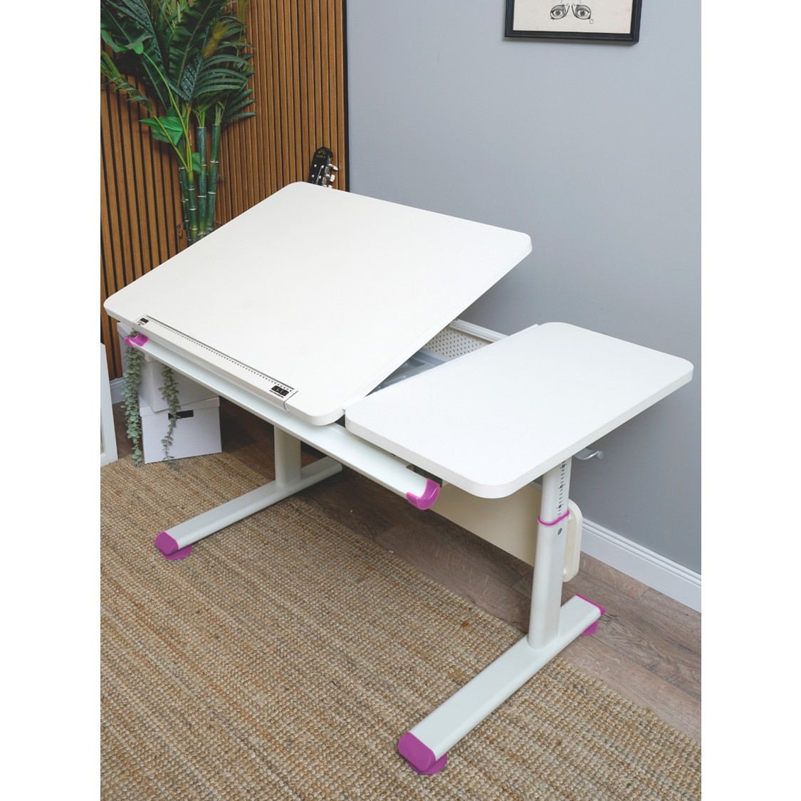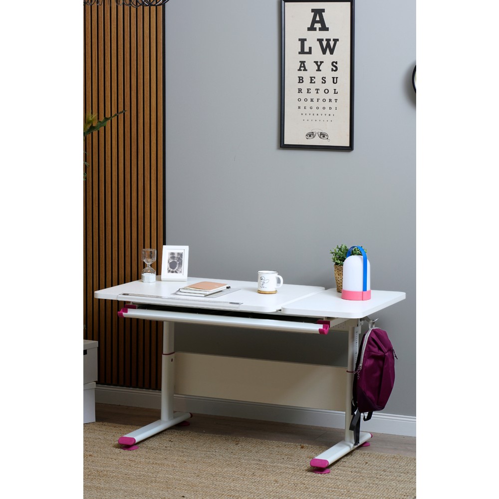 Creo Mobili Kız Çocuk Odası Masası, Ergonomik Çalışma Masası – 130×70 Cm, Beyaz/Fuşya – Vega Simple