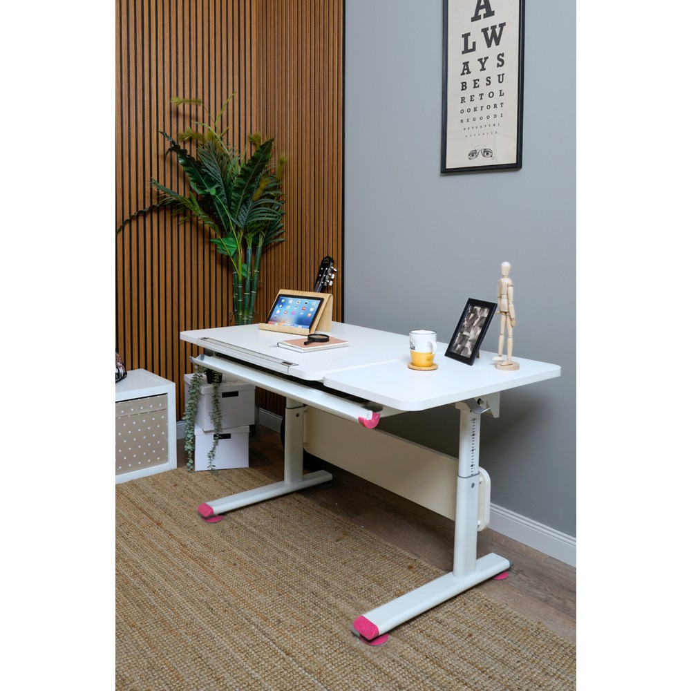 Vega Simple, ergonomik tasarımı ve ayarlanabilir yüksekliği ile kız çocuklarının sağlıklı bir oturuş pozisyonunda çalışmasını destekler. Beyaz gövde ve Fuşya detaylar, odalara canlı ve enerjik bir görünüm kazandırırken, modern tasarımıyla uzun yıllar kullanım için uygundur. 130×70 cm geniş çalışma alanı, ders çalışma, resim yapma ve yaratıcı etkinlikler için ideal bir yüzey sunar.
