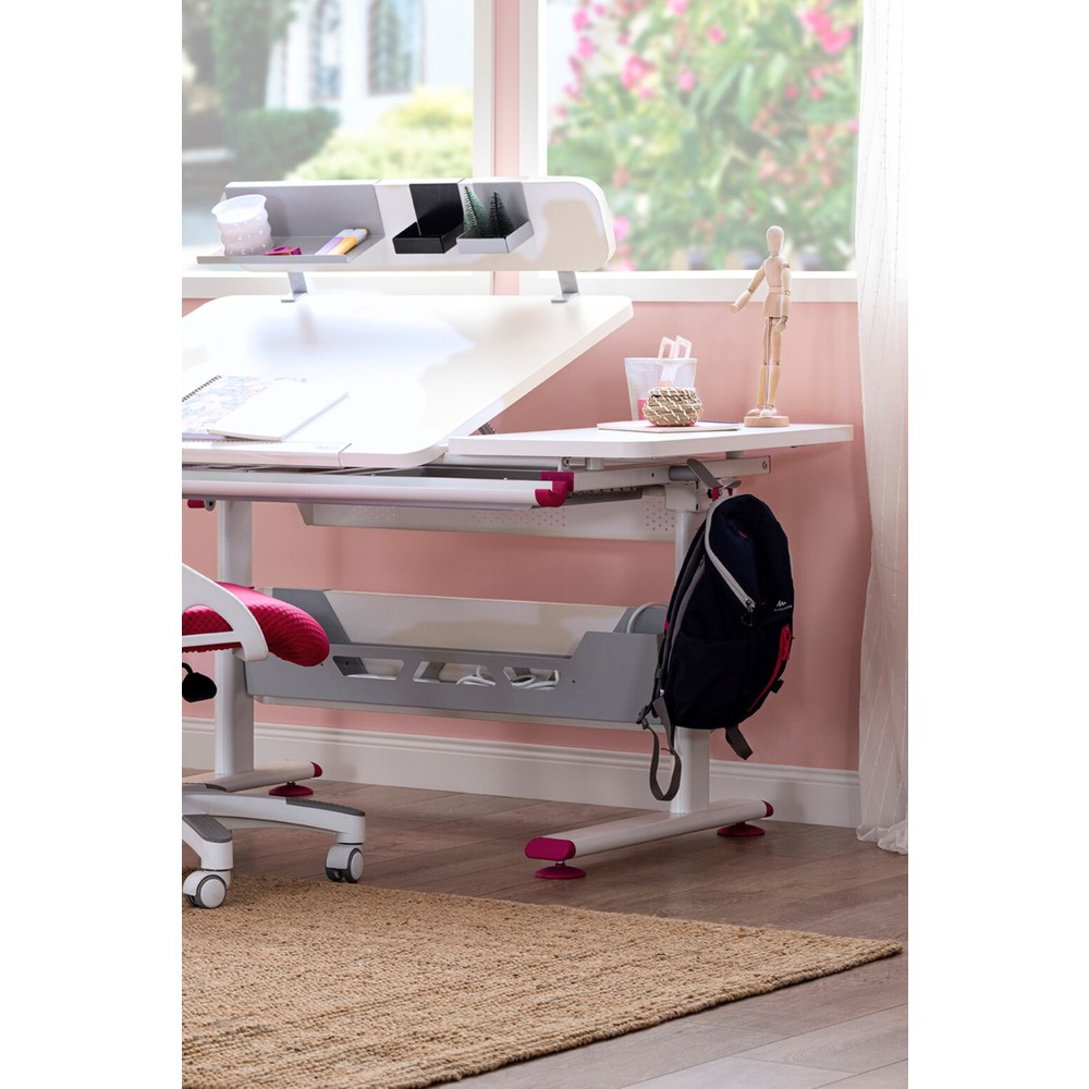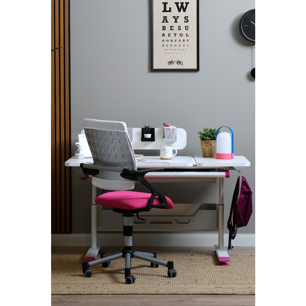 Creo Mobili Yükseklik ve Eğim Ayarlı Öğrenci Masası + Sandalye – Beyaz/Fuşya – Vega Advanced