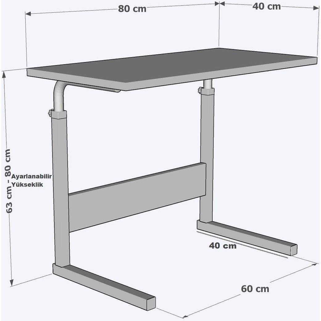 üst tabla öçüsü en 80 cm ,derinlik 40 cm .masa’nın ayarlanabilir yüksekliği 63-80 cm .
