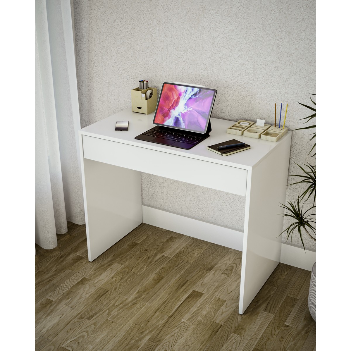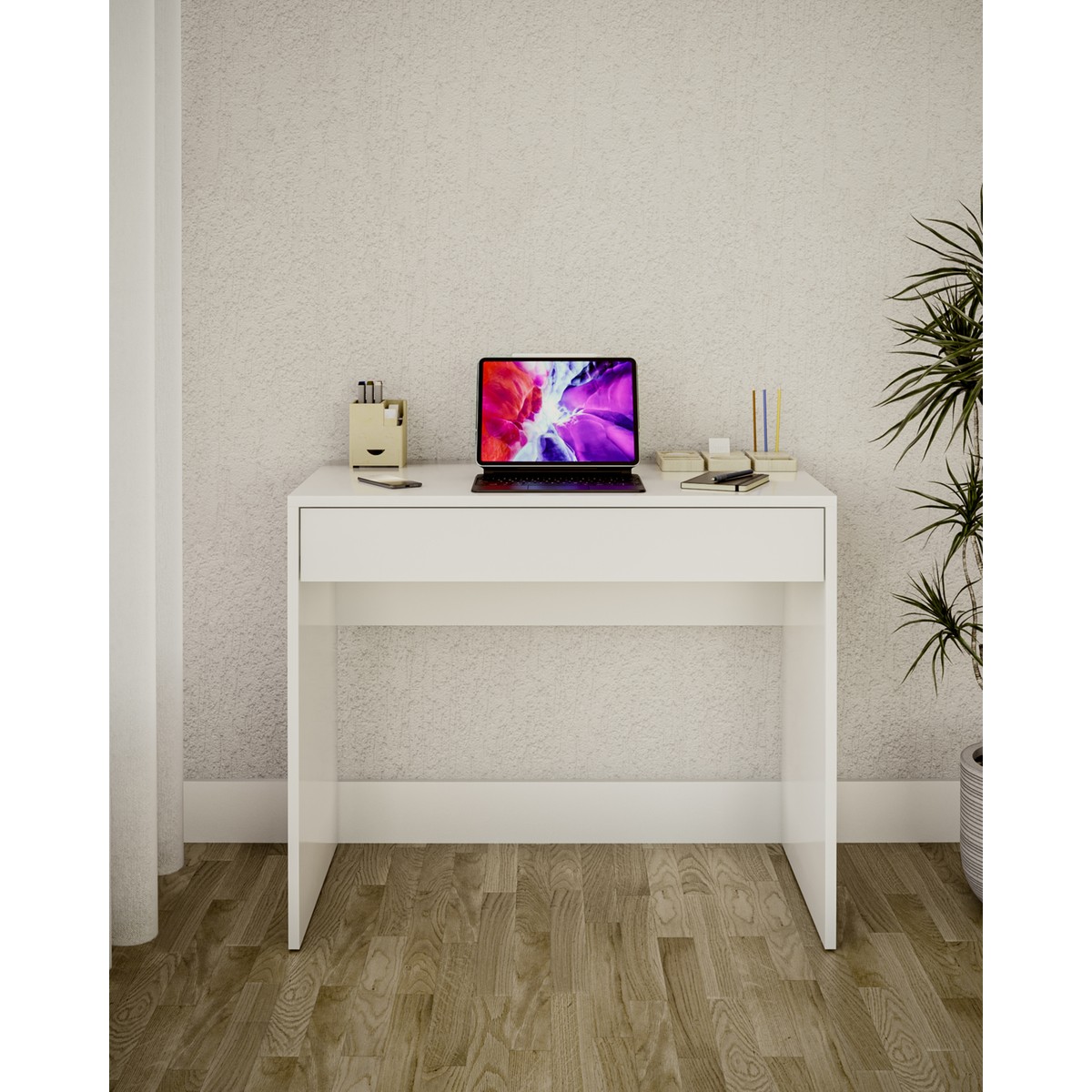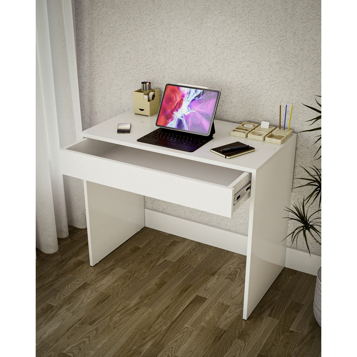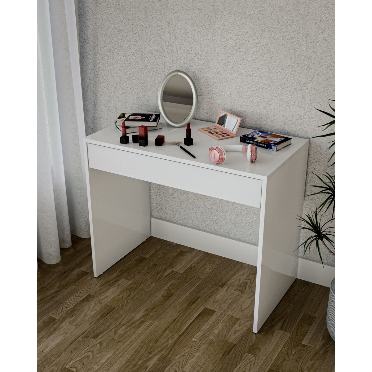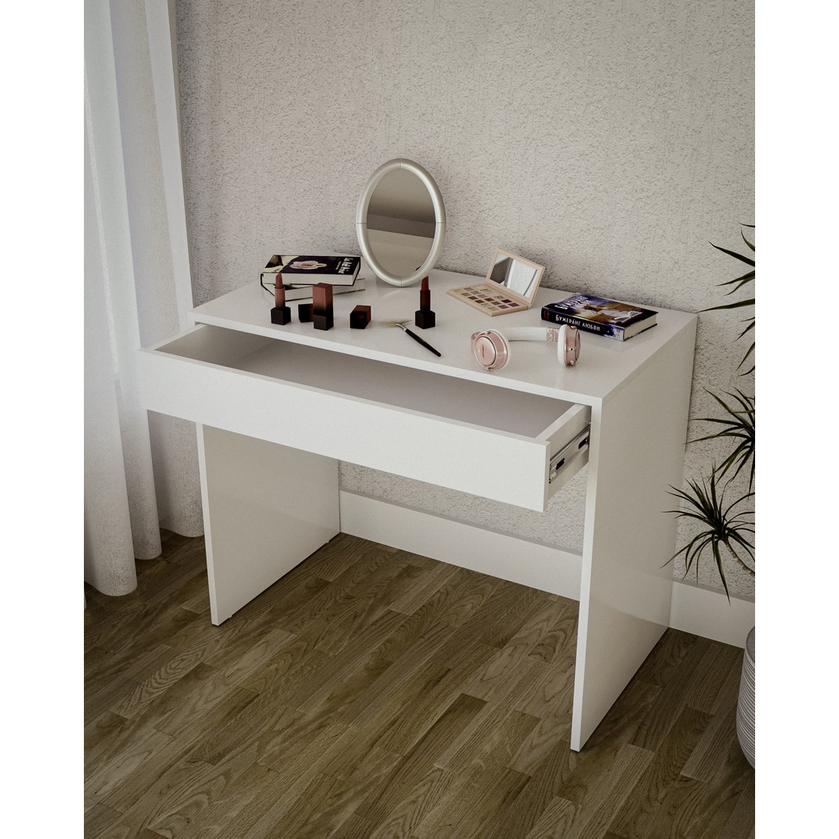 Delta Dizayn 1 Çekmeceli Çalışma / Makyaj Masası – Beyaz, E1 Suntalam, Teleskopik Raylı