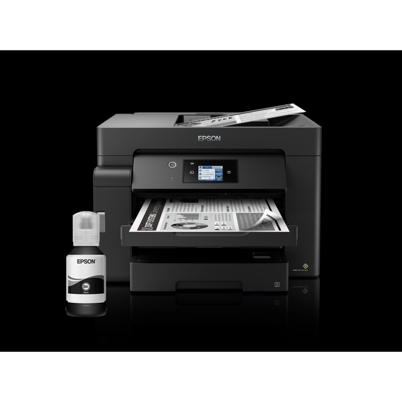 Küçük ofis kullanıcıları ve kurumsal kullanıcılar için özellik açısından zengin bu monokrom EcoTank, sayfa başına düşük bir maliyet sunarken A3+ görevlerini kolaylaştırır. A3+ işleri, yüksek hızlı baskı ve tarama, iki adet 250 sayfalık A3 ön tepsi, 50 sayfalık A3 arkadan besleme ve 50 sayfa A3 ADF sayesinde hızlı bir şekilde tamamlanabilir. Mobil baskı, Ethernet ve 6,8 cm LCD dokunmatik ekran ile istediğiniz gibi baskı alın.