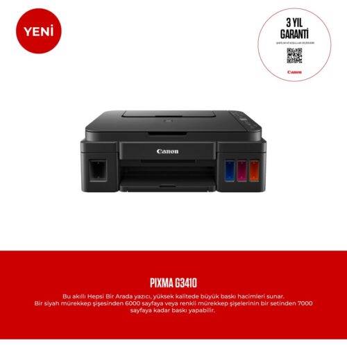 Canon Pixma G3410 Wi-Fi + Tarayıcı + Fotokopi Renkli Çok Fonksiyonlu Tanklı Yazıcı