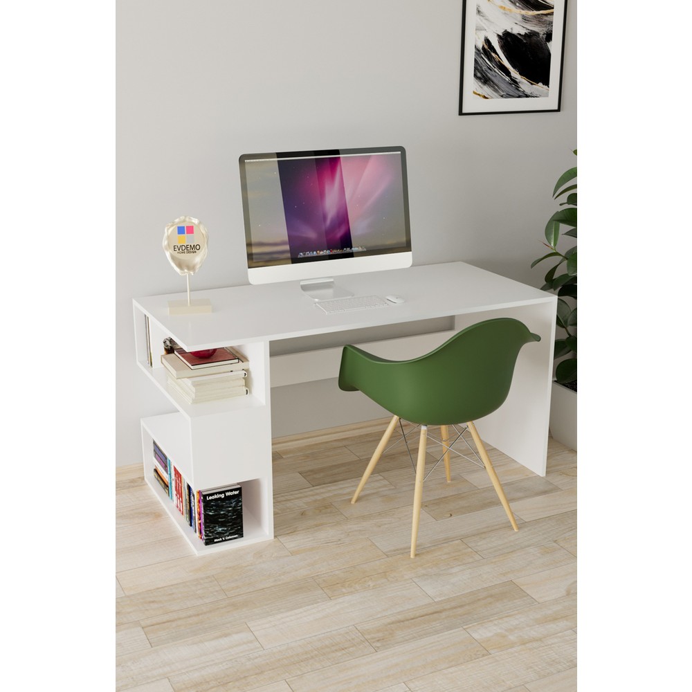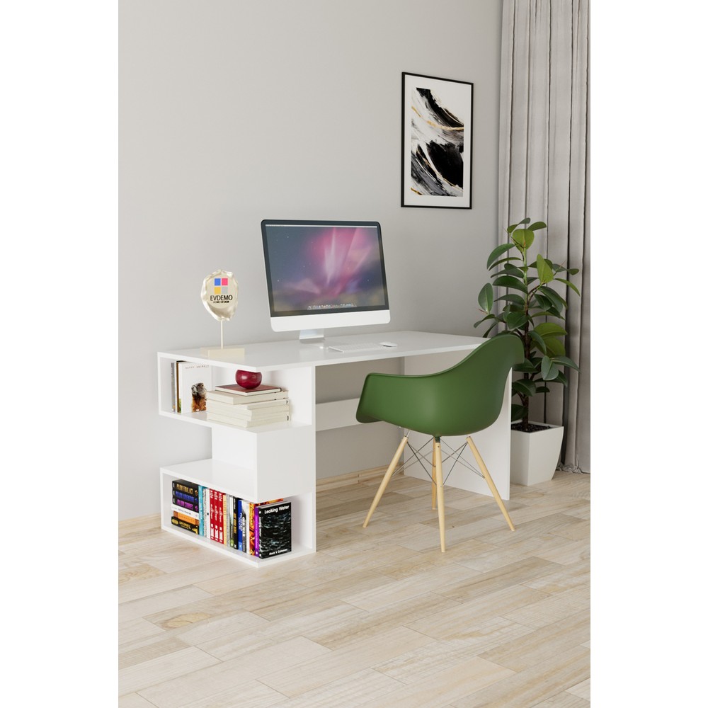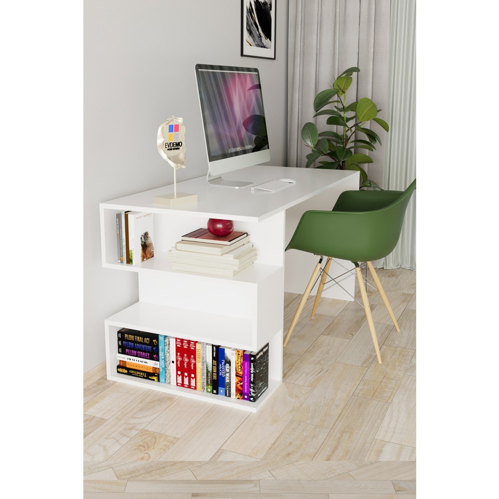 EVDEMO Leo Kitaplıklı Çalışma Masası Beyaz