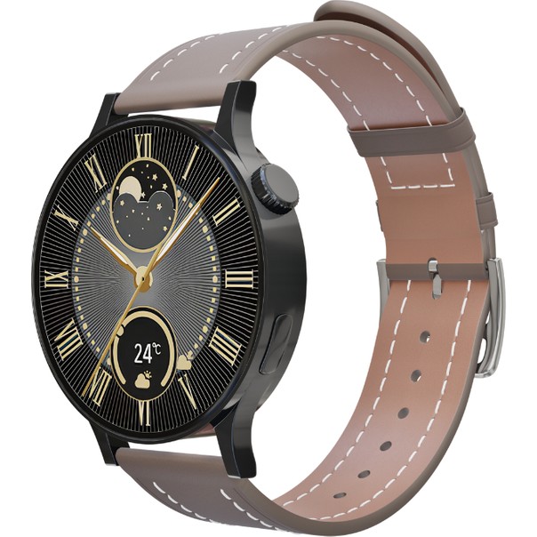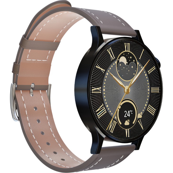 Fro LW38 Siyah Kasa 38 mm Kahverengi Kordon Akıllı Saat