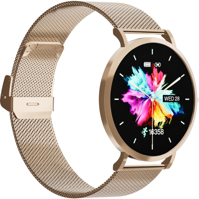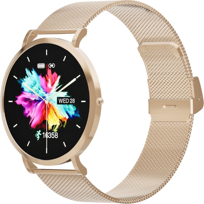 Fro LW43 Gold Kasa 43 mm Gold Çelik Hasır Kordon Akıllı Saat
