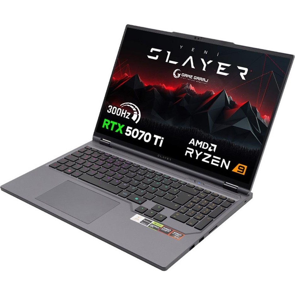 Game Garaj Slayer R9T-5070TI C6 Amd Ryzen 9 9955HX 32GB Ram 1tb SSD RTX5070TI 16″ Qhd+ IPS 300Hz Freedos Gaming Laptop