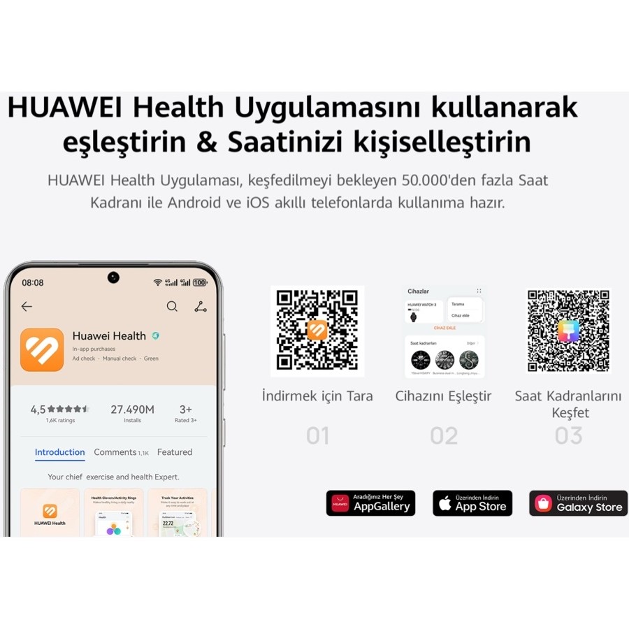 3. Sadece Android 8.0/iOS 13.0 veya daha yeni bir sürümü çalıştıran ve Huawei Health uygulaması yüklü bir telefonla eşleştirildiğinde kullanılabilir. Gerçek özellik kullanılabilirliği, telefon modeline ve işletim sistemine bağlı olarak değişiklik gösterebilir.