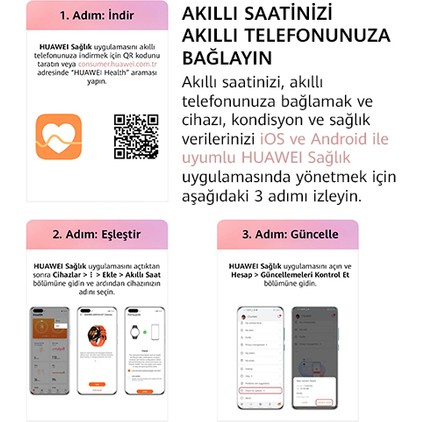 15. Saat, Android 8.0 ile iOS 13.0 veya sonraki sürümleri çalıştıran ve Huawei Health uygulamasına sahip telefonlarla çalışır. Kullanılabilir özellikler telefon modeline bağlı olarak değişebilir. Gerçek kullanım referans alınmalıdır.
