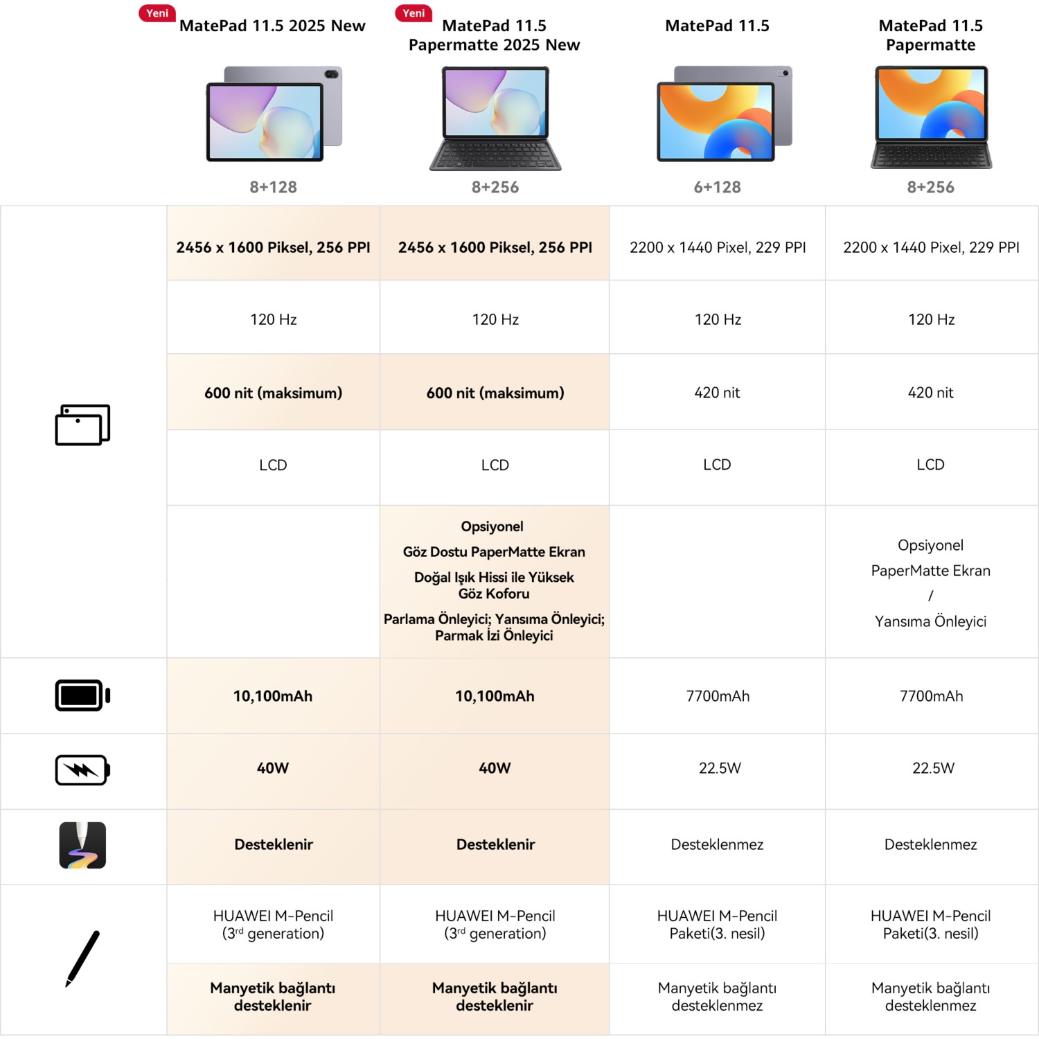 Huawei Yeni (2025) MatePad 11.5″ PaperMatte 8GB 256GB Tablet + Klavye