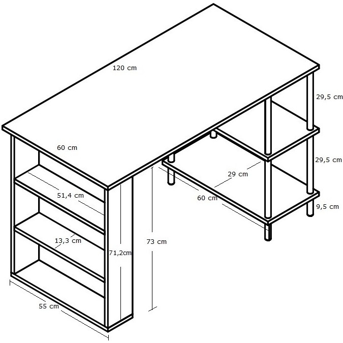 Bofigo 60X120 cm 2 Raflı Çalışma Masası Bilgisayar Masası Ofis Ders Yemek Masası Çam