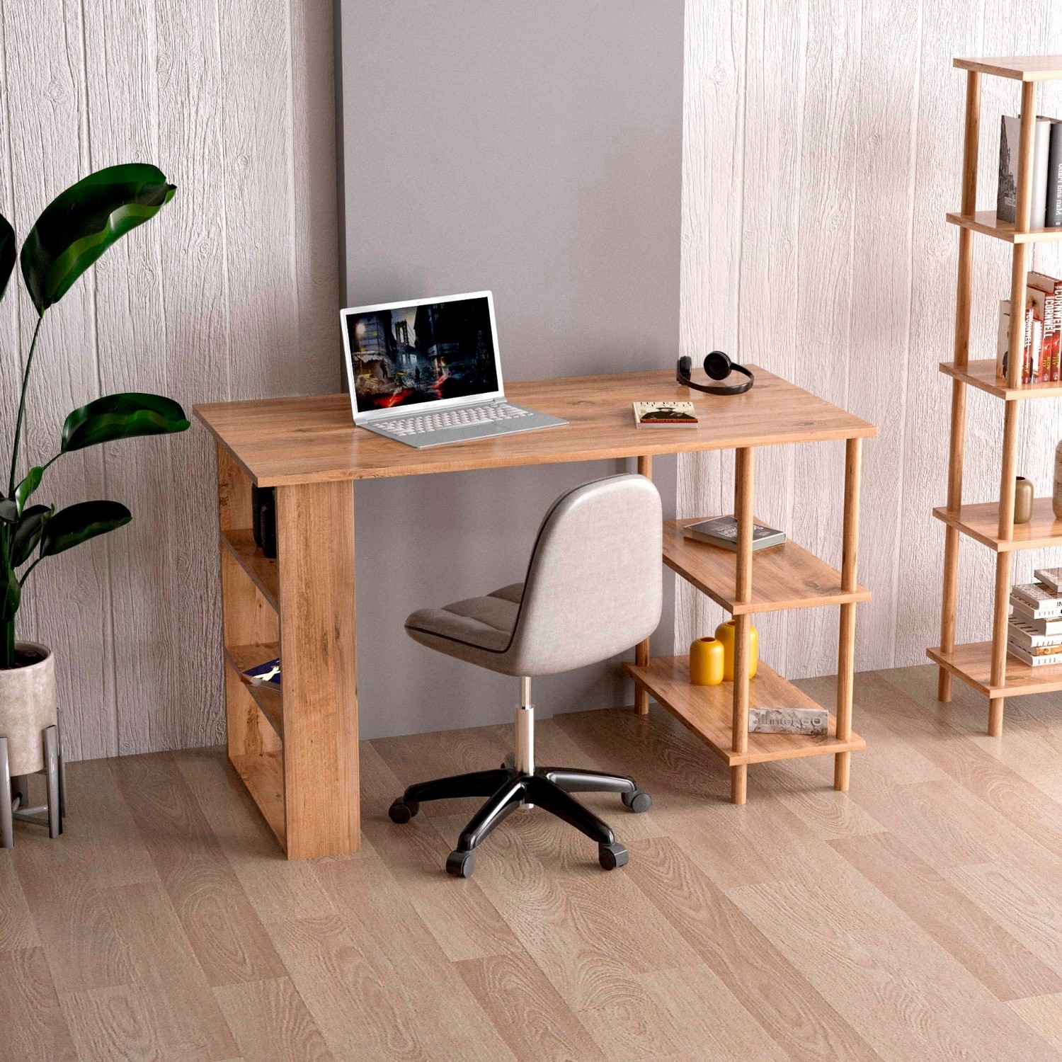 Çalışma Masası Bilgisayar Masası Ofis Ders Yemek Masası 4 Raflı Ahşap Ayaklı 2 Farklı Seçenek