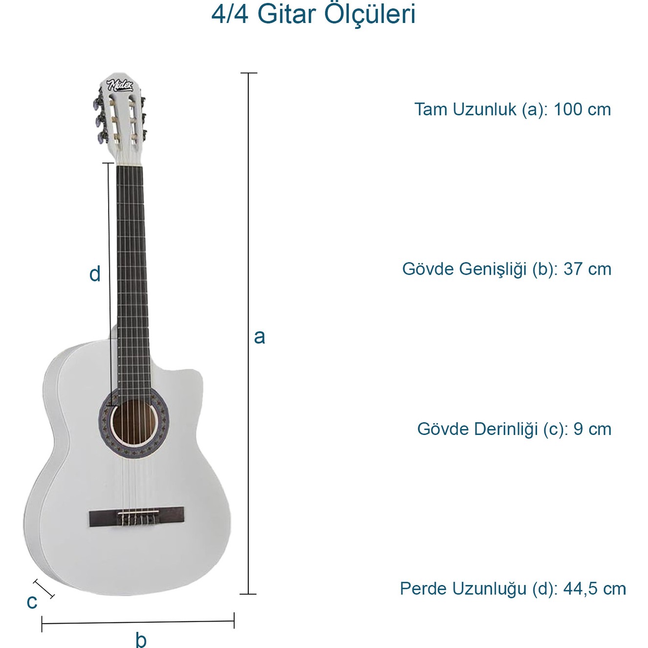 Midex CG-395WH Beyaz Renk Kesik Klasik Gitar 4/4 Yetişkin Boy Sap Ayarlı Full Set için 6 değerlendirme