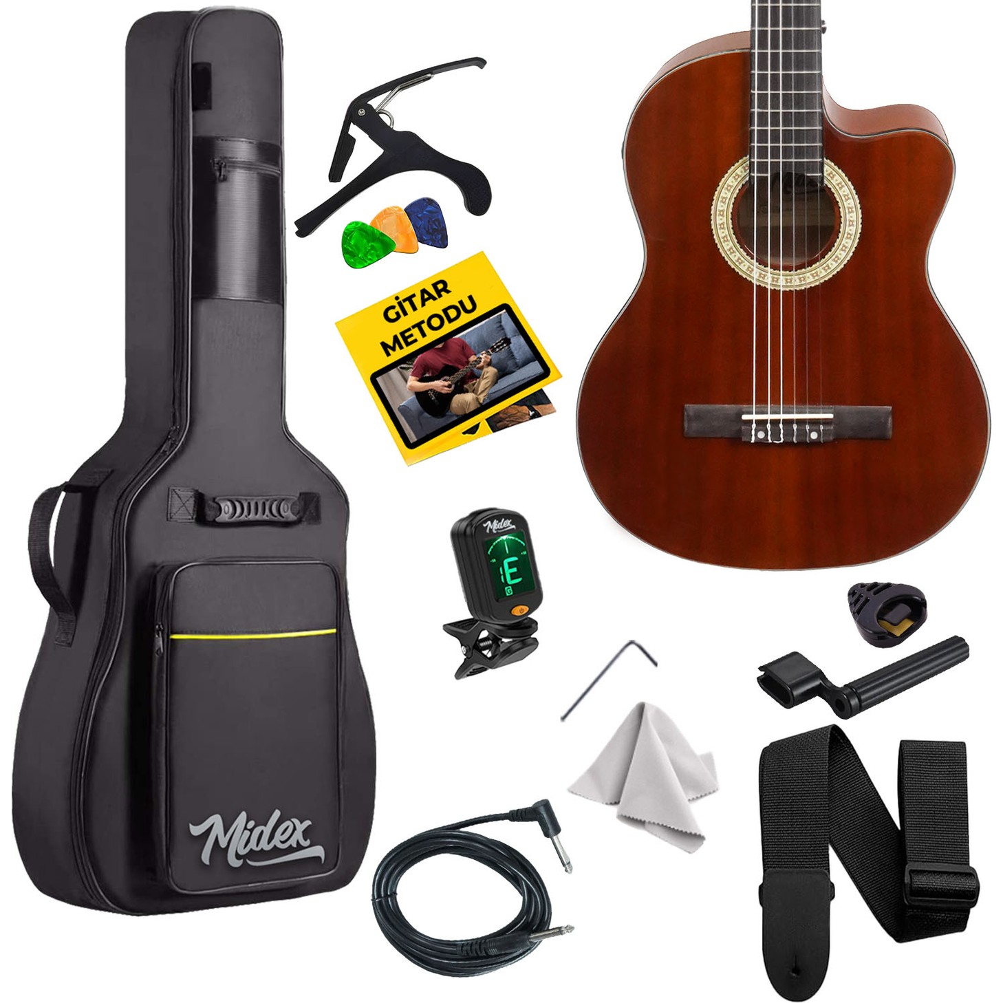 Midex X48 Profesyonel Masif Ağaç Ekolayzerli Elektro Klasik Gitar Seti 4/4 üst segment