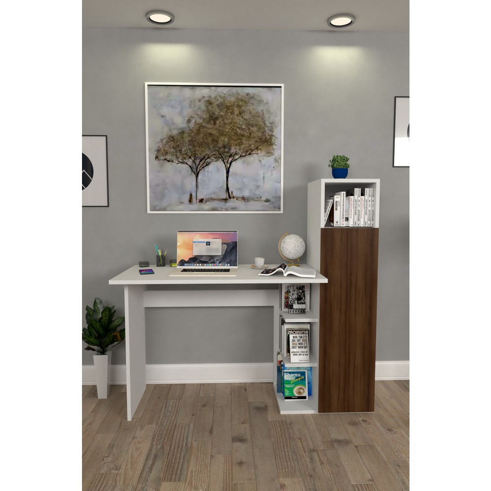 Bimossa Hürrem Kitaplık ve Raflı Çalışma Masası Ceviz Beyaz