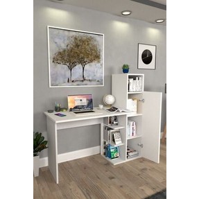 Moonlife Çınar Kitaplıklı Çalışma Masası Beyaz