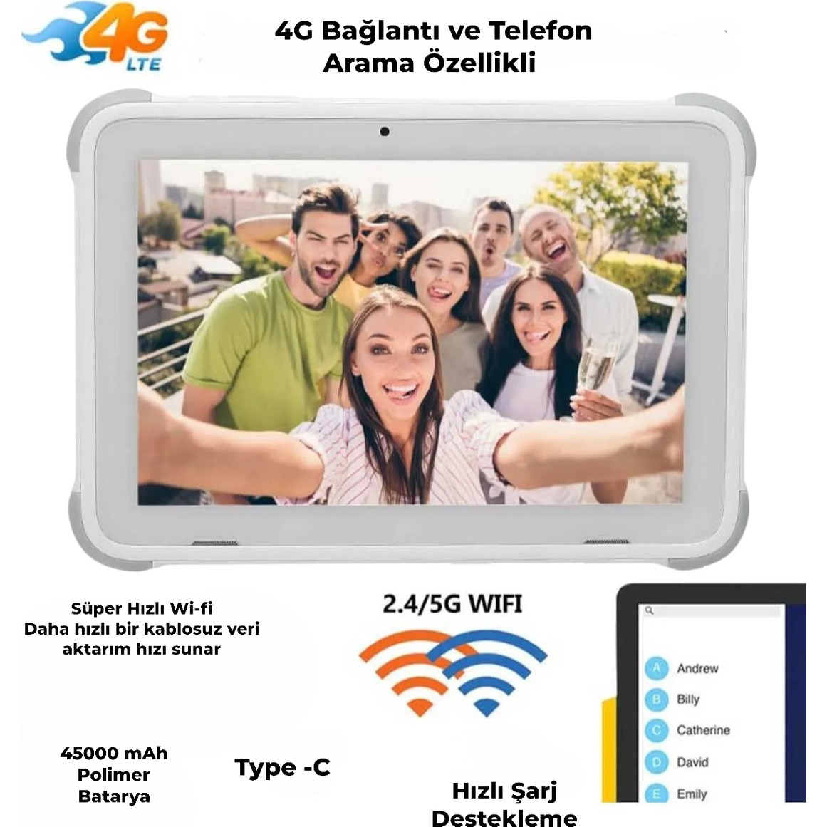 - Bu tabletin bir diğer özelliği hızlı şarj özelliğidir. Typ-c girişi sayesinde kolayca şarj edebilirsiniz.