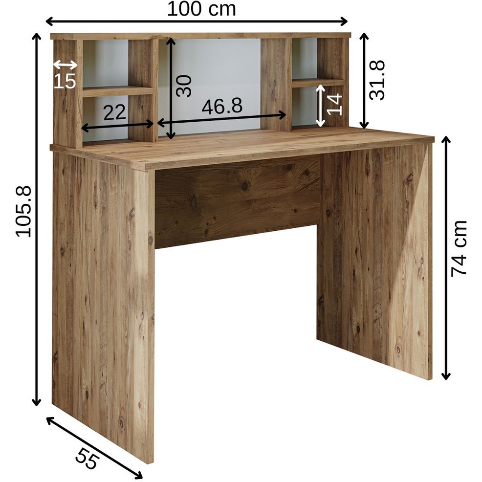 Masa ölçüleri ; • Genişlik: 100 cm • Yükseklik: 105,8 cm • Derinlik: 55 cm