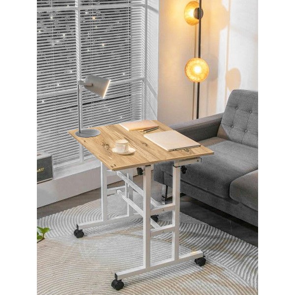 servetavcı Yükseklik Ayarlı Bilgisayar/Laptop Ve Çalışma Masası – Çam Beyaz 80 x 60 cm (Tekerli) Oval Kenar