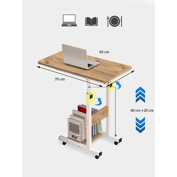 servetavcı Yükseklik Ayarlı Çift Raflı Laptop Sehpası ve Çalışma Masası – Antrasit (Tekerli) 70 x 40