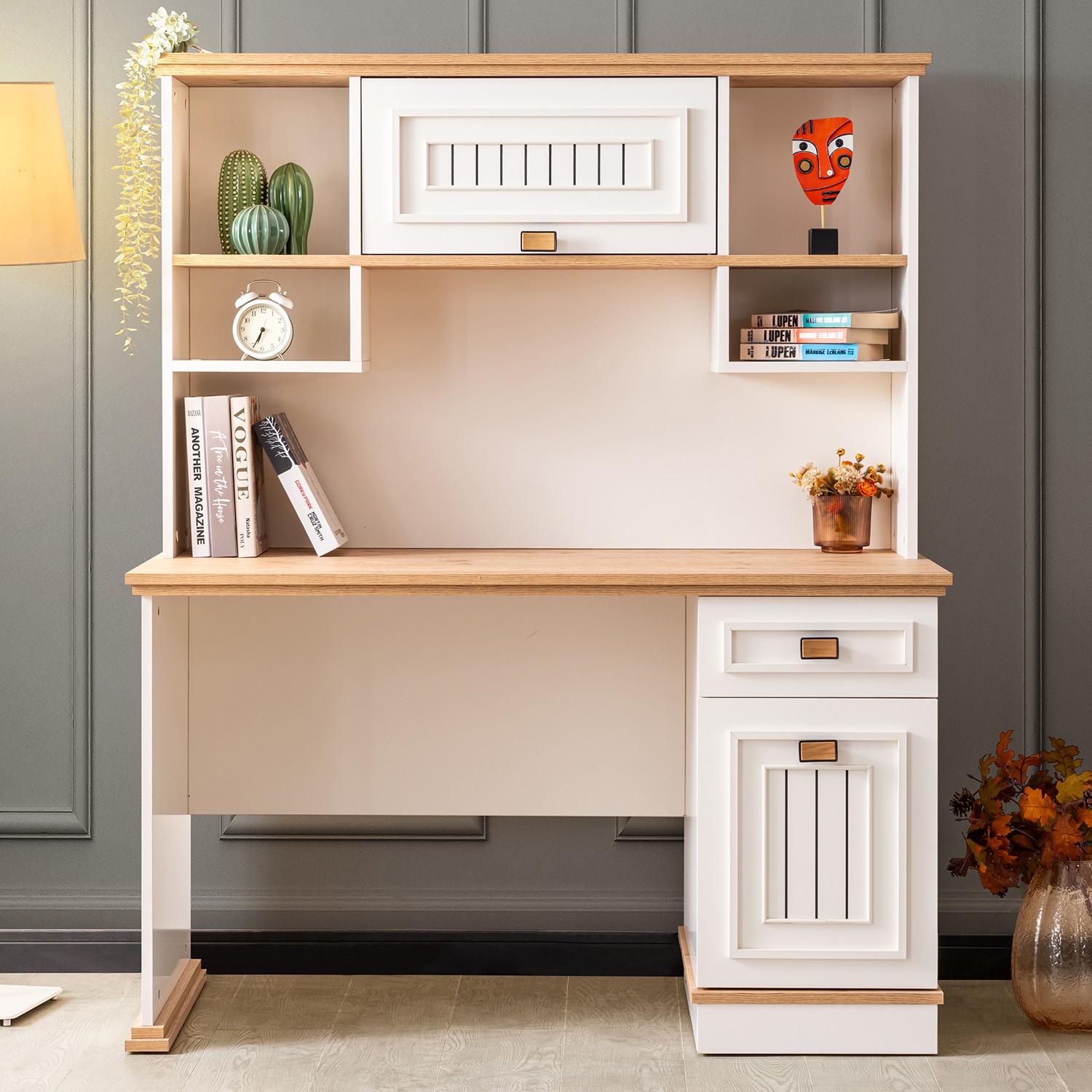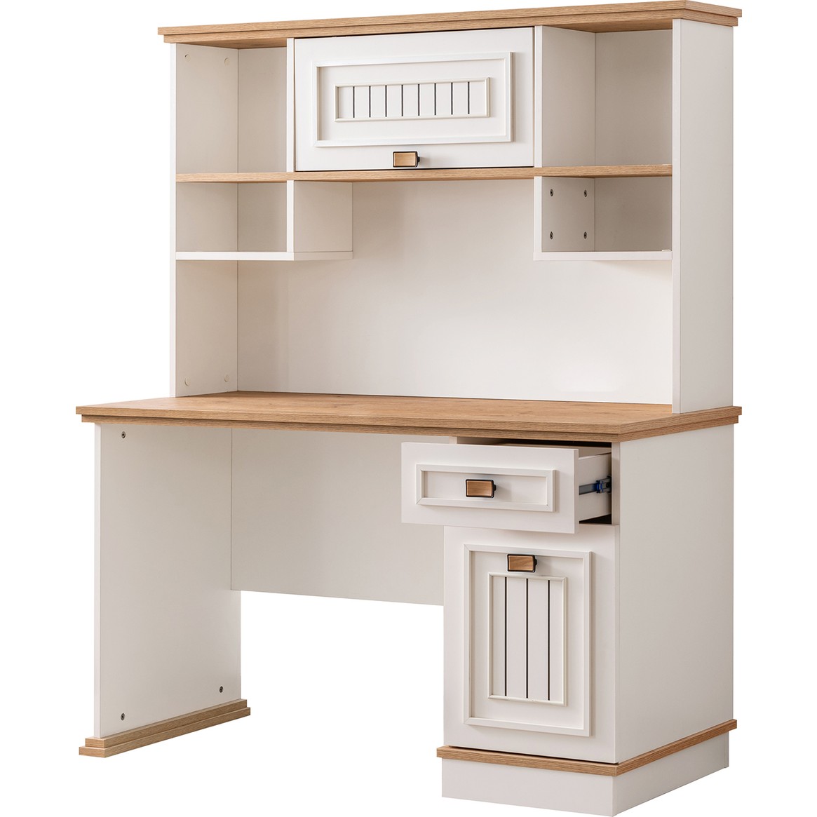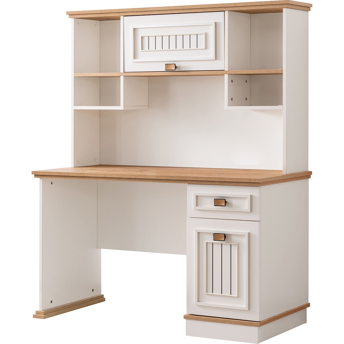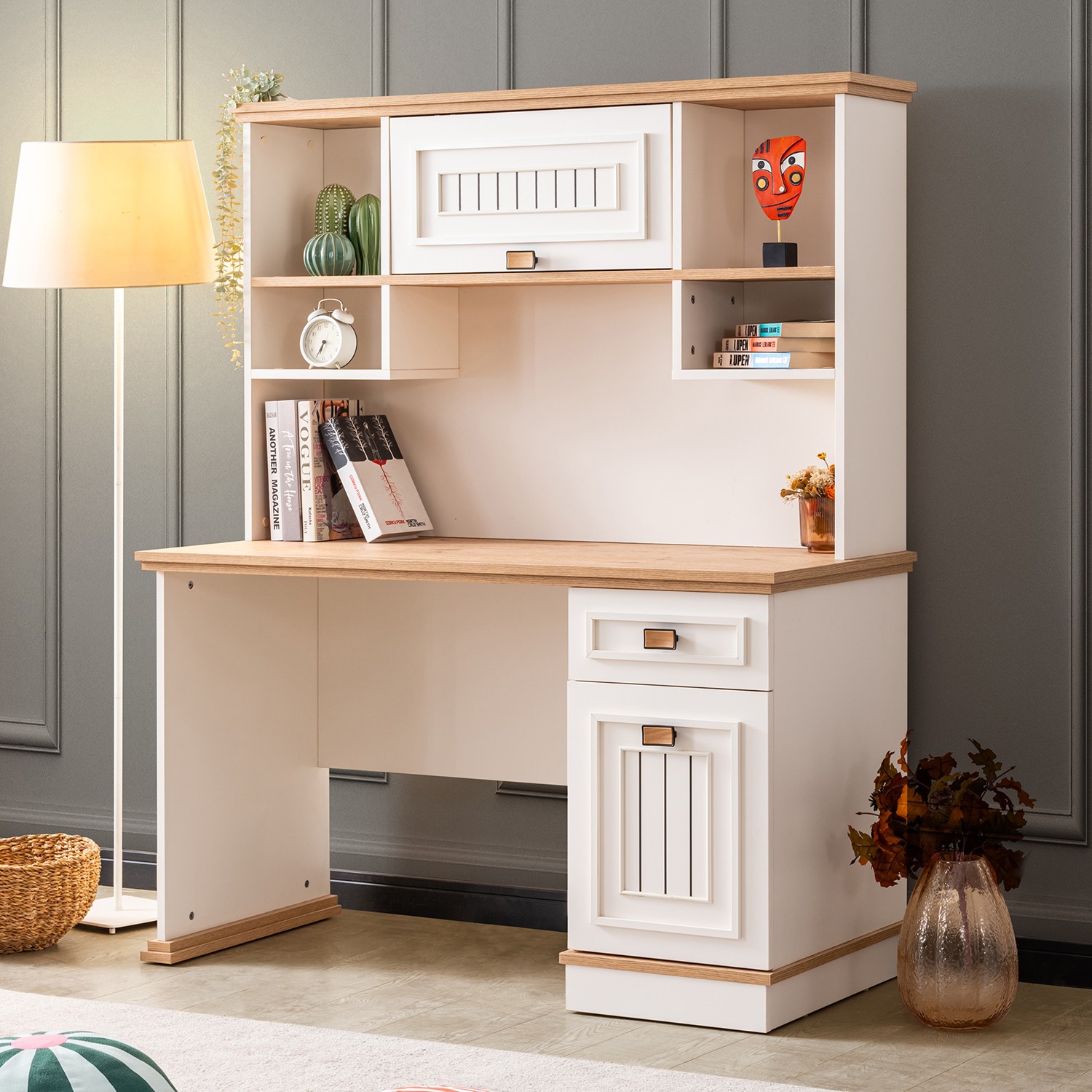 Bimossa Hürrem Kitaplık ve Raflı Çalışma Masası Ceviz Beyaz