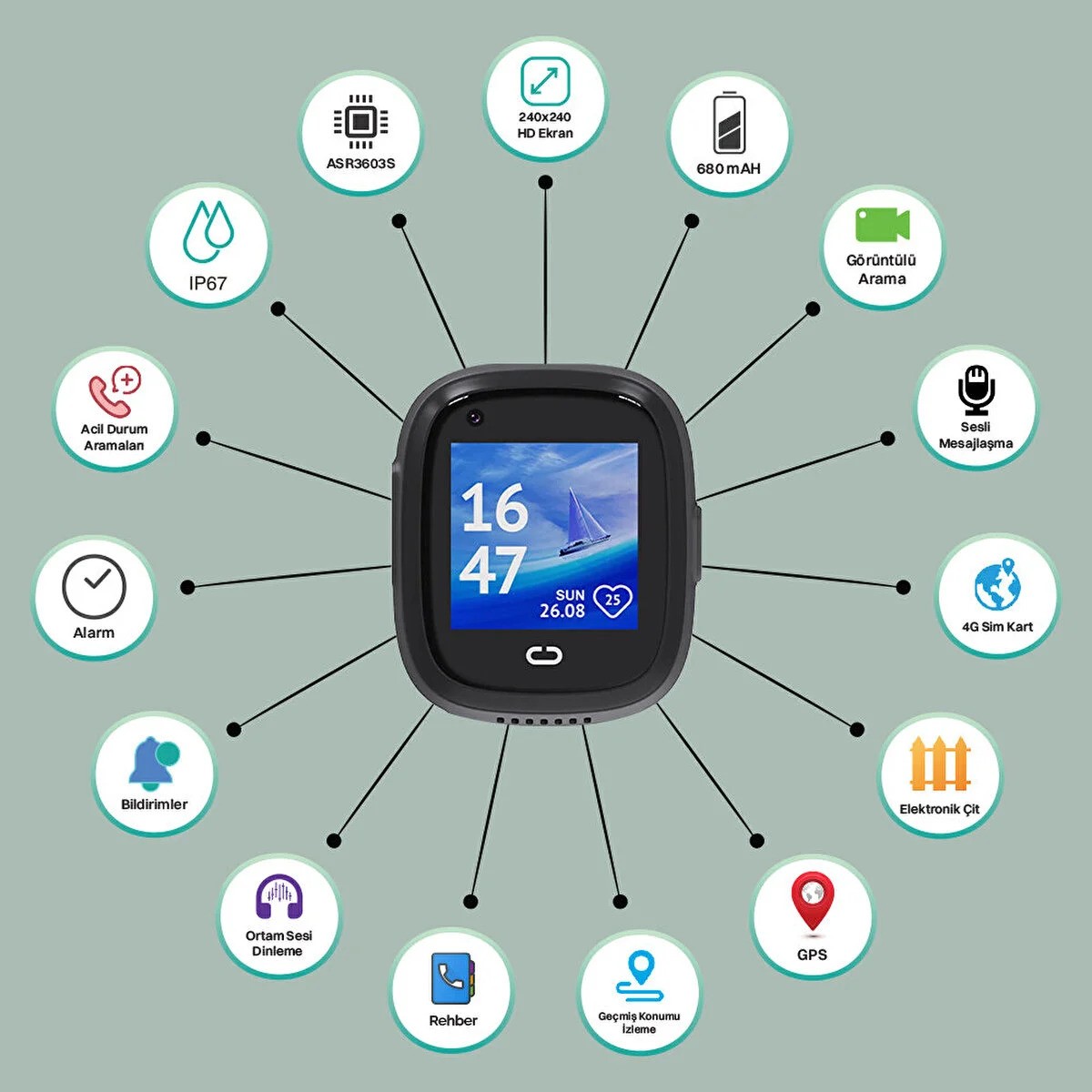 Slazenger Akıllı Çocuk Saati 4.5g S Im Kart Destekli Görüntülü Görüşme Özelliği için 4 değerlendirme