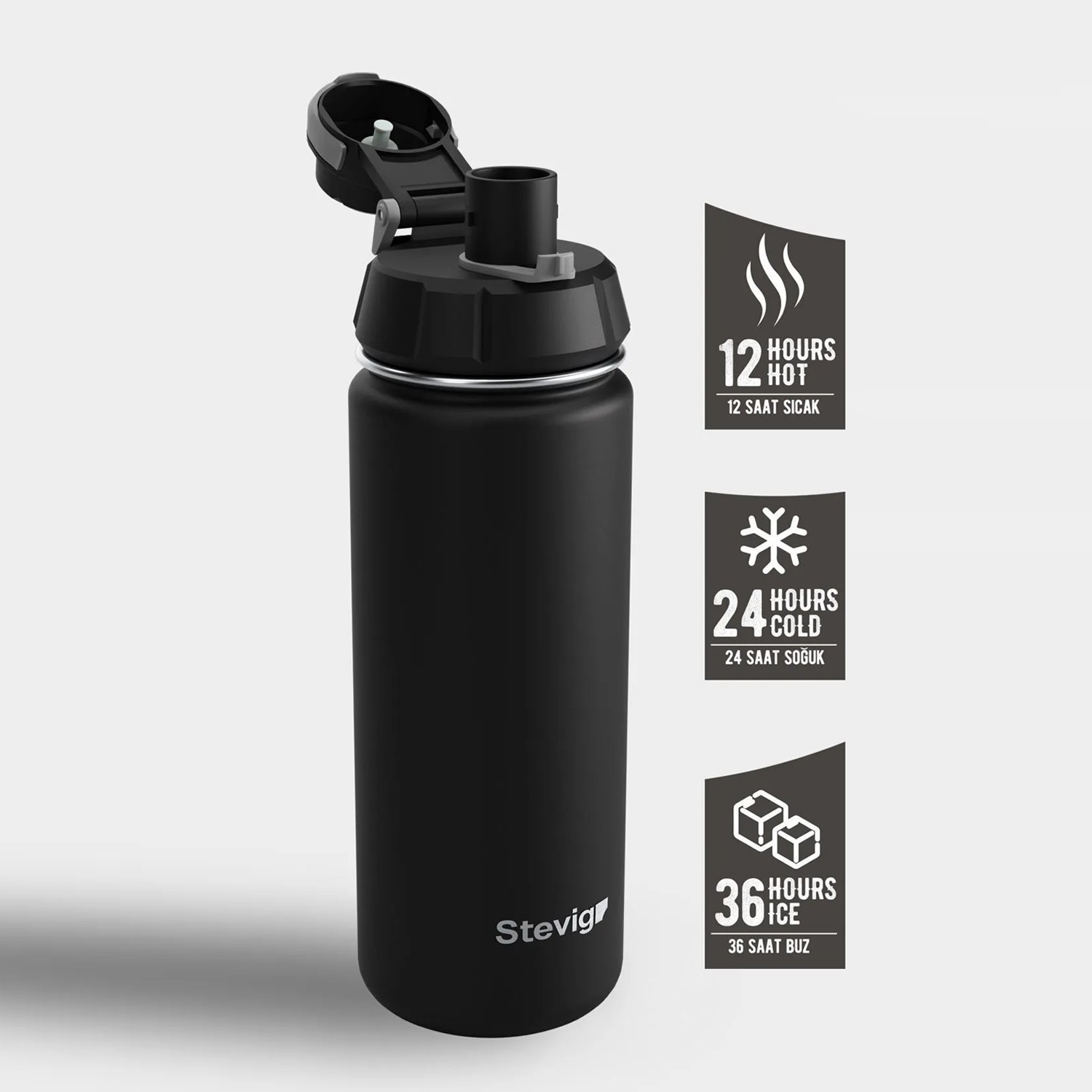 Stevig 1 Hand Leak-Proof Sızdırmaz Çelik Termos 500 ml Black ST-207